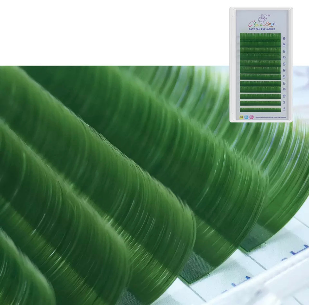 GLAMLASH Colored Easy Fanning Eyelash Extension Green/Blue/Purple !